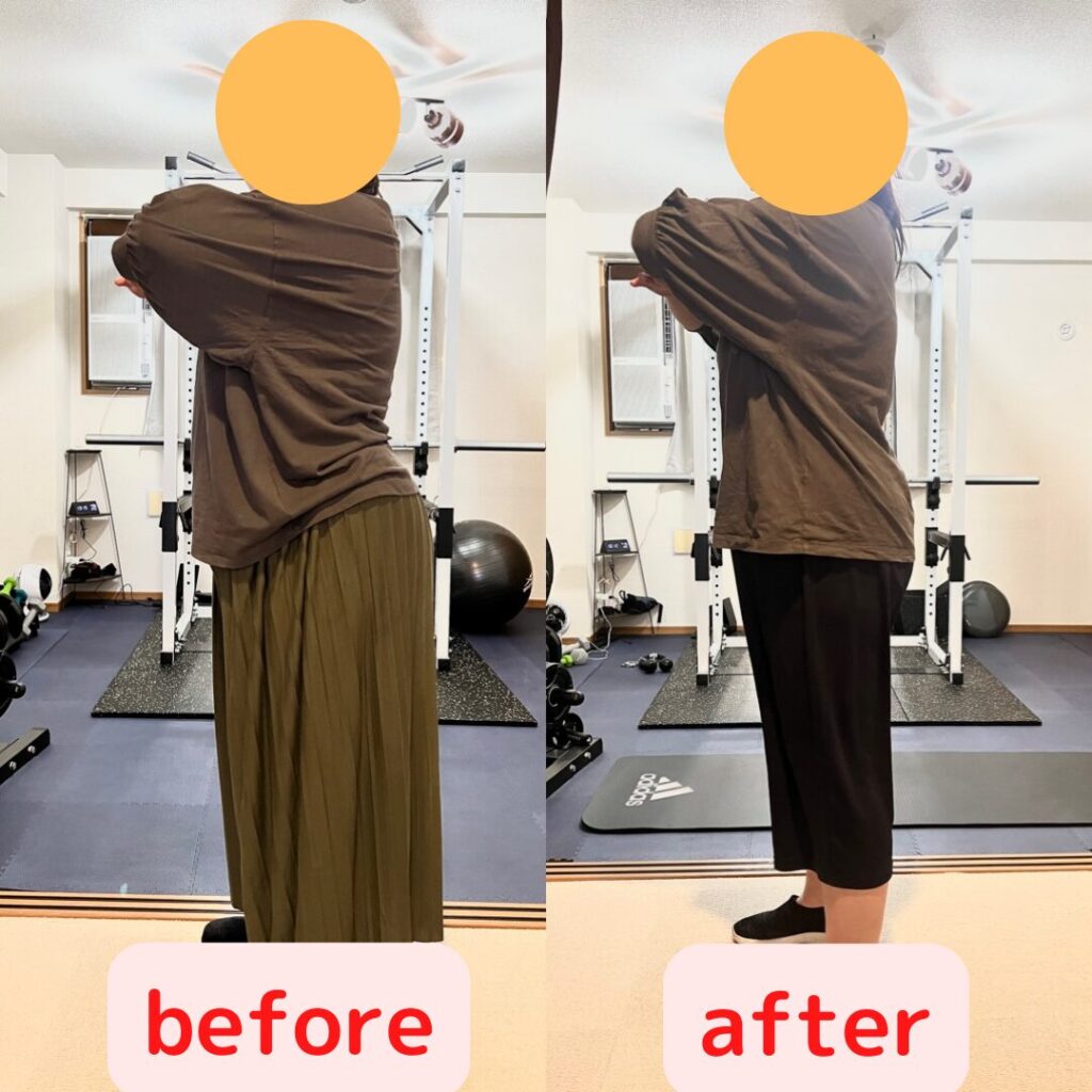 半年間のトレーニング本当にお疲れ様でした! マイナス22kgという数字も素晴らしいですが、写真を見比べた時のこの「シルエットの変化」には私も感動しました。