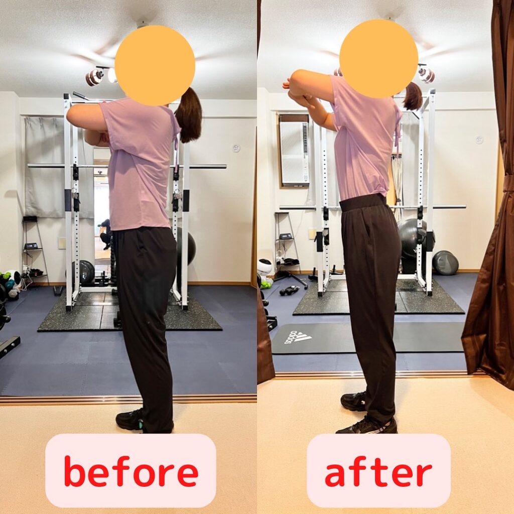 当初「運動嫌い」とおっしゃっていましたが自宅でのトレーニングも取り入れながら、本当に素晴らしい変化を遂げられました!